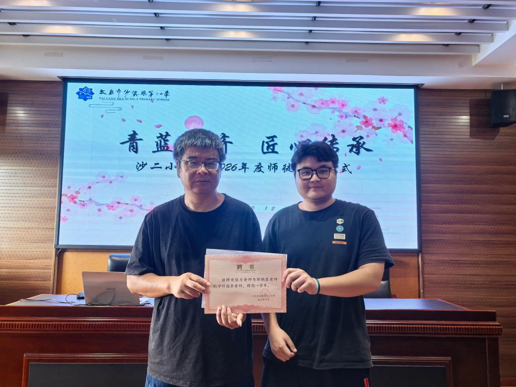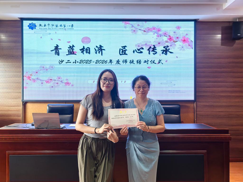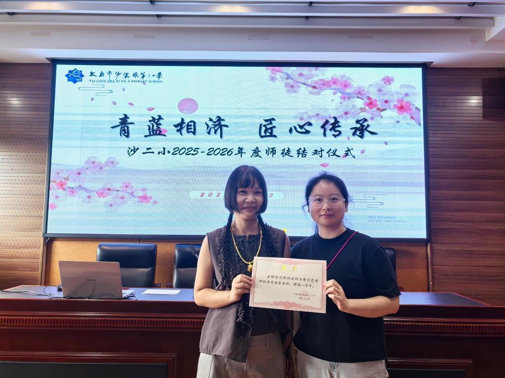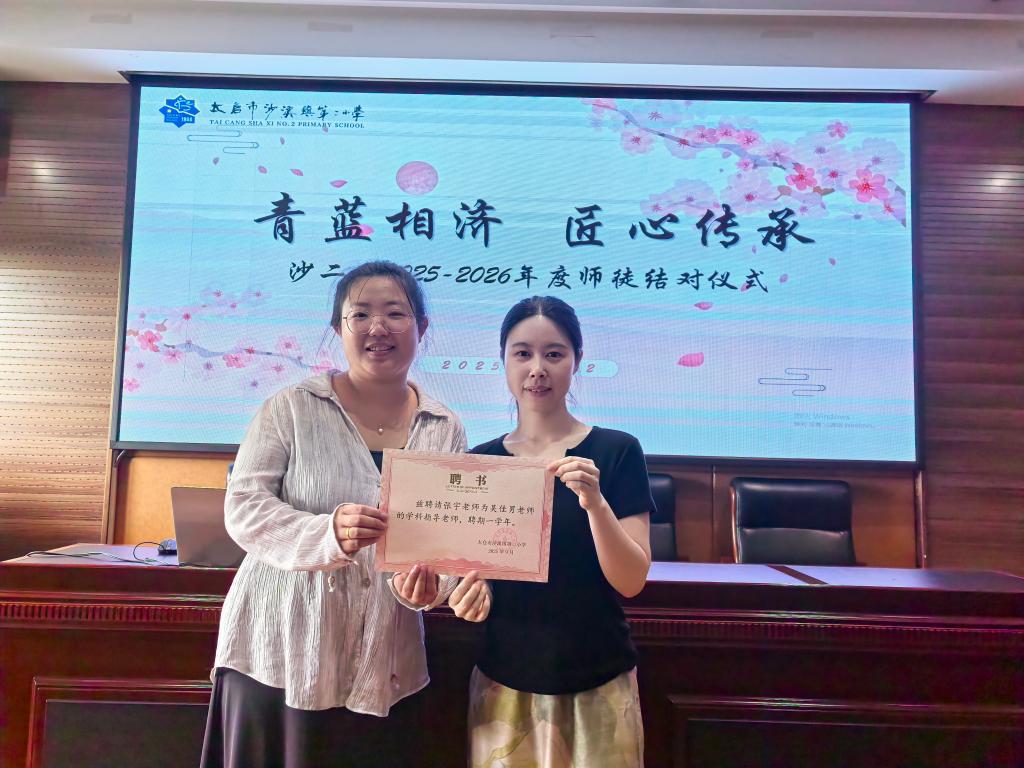 紧接着,主持人郑重宣读了《太仓市沙溪镇第二小学师徒结对协议》。协议明确了师傅与徒弟各自的职责与要求。师傅们需做到“三带”:带师德——以身作则,言传身教,关心徒弟在师德修养和职业规范方面的成长;带师能——在学科教学或班级管理中潜心指导,传授备课、上课、作业布置、教研开展、班级常规管理、家校沟通等关键经验;带师研——带领徒弟积极参与教学与德育研究,指导其撰写教学小结、论文或工作反思,共同提升专业能力。徒弟们则需做到“三学”:学思想——学习教育教学和班级管理的基本理念,端正职业态度,增强育人责任感;学本领——熟练掌握教学六认真、教材钻研、听课评课、班会组织、家校联系等基本技能,不断提升专业素养;学成长——以谦虚好学的态度主动请教,积极反思,认真总结,完成汇报课与学习心得,共同营造和谐奋进的团队氛围。清晰的职责划分,为后续结对活动的有效开展奠定了坚实的基础。