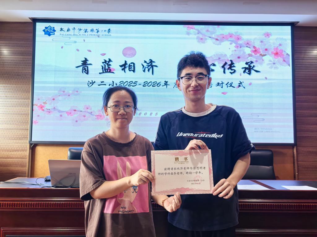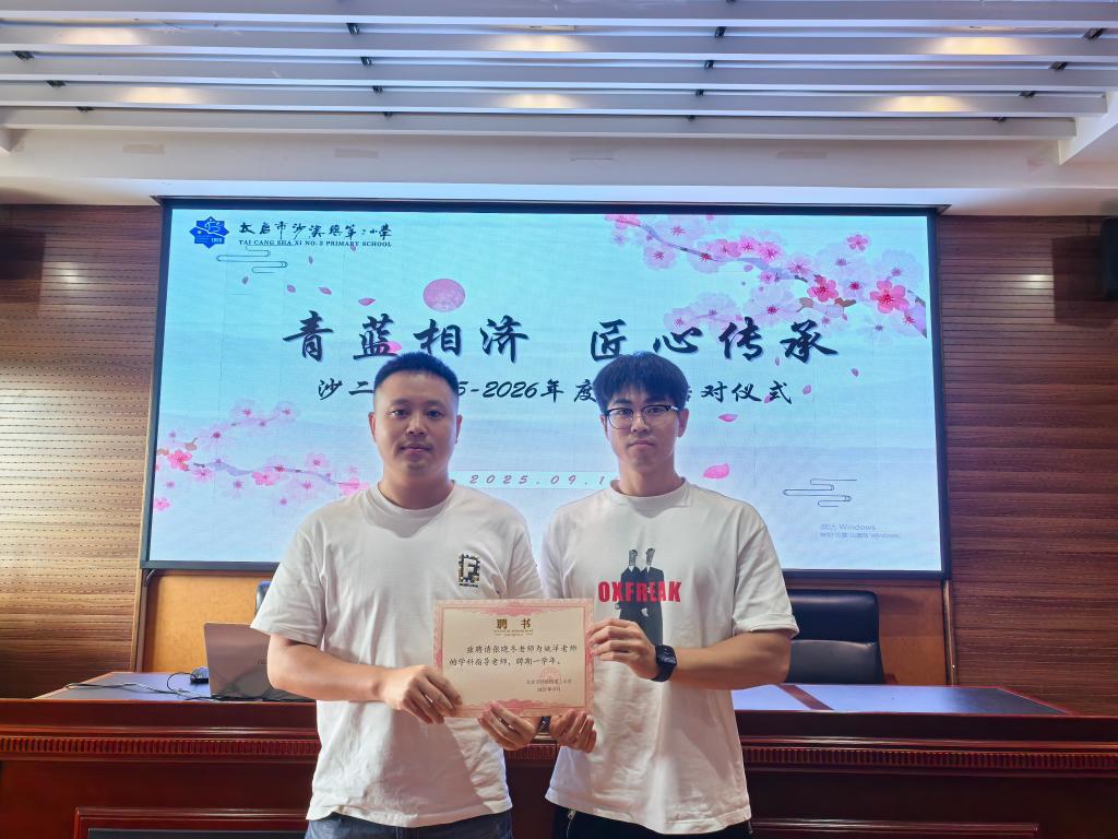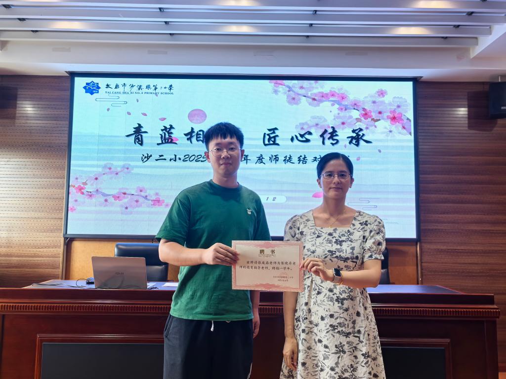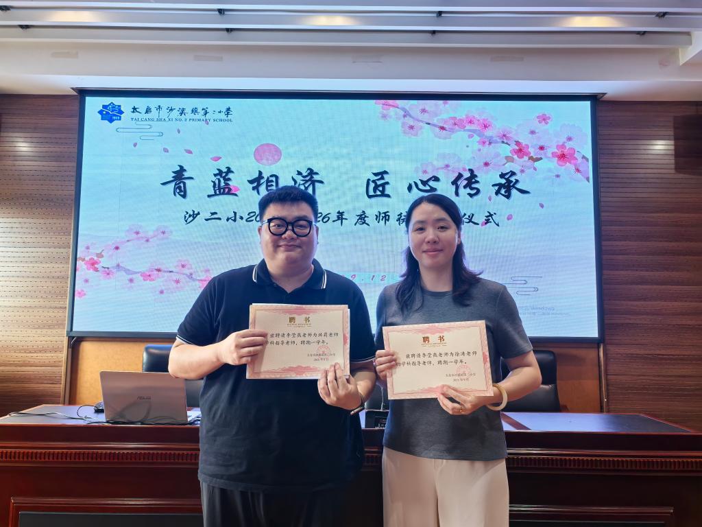 结对师徒庄重地在协议书上签下了自己的名字。一笔一划,签下的不仅是一份承诺,更是一份沉甸甸的责任。随后,学校领导为各位指导教师颁发了鲜红的聘书。一纸聘书,承载的是学校的信任与嘱托,是导师们倾囊相授的使命担当。