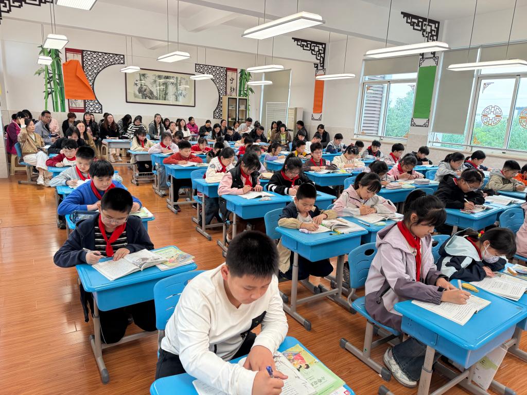 2025年10月21日下午,太仓市沙溪镇第二小学语文教师张思明在观摩教室执教教研课《父爱之舟》,其他语文教师集中听课。《父爱之舟》是统编语文教材五年级上册的一篇精读课文,也是一篇回忆性散文。在教学中,张老师聚焦“小事藏深情”,突破情感理解难点,以“舟”为线索,串联买枇杷、缝棉被、凑学费等场景,引导学生抓“父亲弯腰低头缝补”“节省到极点”等细节,避免了对“父爱”的空泛解读,让学生直观感受到“平淡叙事下的深沉情感”,多数学生能结合自身经历共情。这堂教研课以小见大,既紧扣语文核心素养培养要求,又践行了“学做人”的育人理念,为小学高段情感类文本教学提供了可借鉴的实践经验。