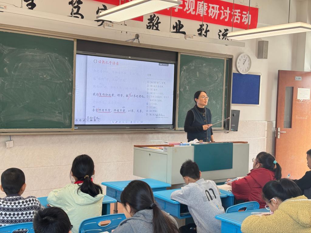 2025年11月26日下午,刘文娣老师在观摩教室执教教研课《古人谈读书》。本课是统编教材五年级上册第八单元的第一篇课文。本单元的人文主题是“读书明智”,语文要素是“根据要求梳理信息,把握内容要点”。本课由两则文言文组成,选取古人关于读书学习的言论,旨在引导学生理解读书的意义,培养正确的读书方法和态度,激发他们对知识的渴求。本课学习第一则选自《论语》,是孔子关于学习态度和学习方法的六句话,告诉我们学习要实事求是、学思结合等。刘老师主要设计三个学习活动:读熟孔子语录,读懂孔子见解,领悟读书之道。第一个活动带领学生读准,读熟,读好停顿;第二环节旨在读懂,理解字词句子意思;最后引导生活化理解,感悟读书道理。