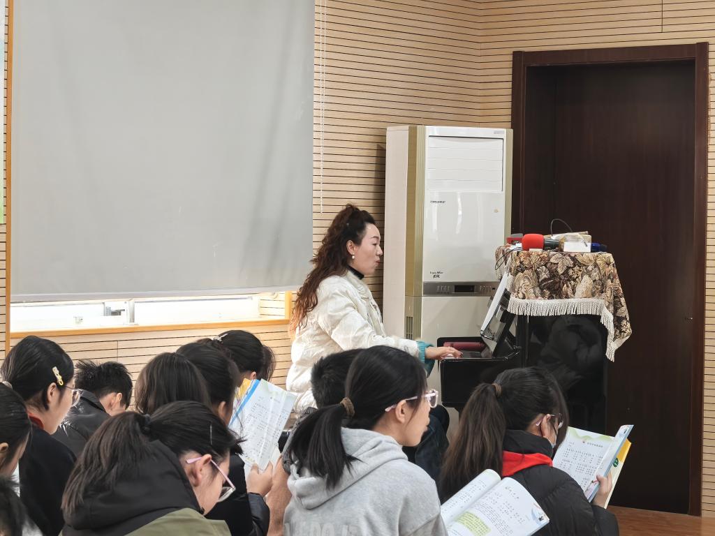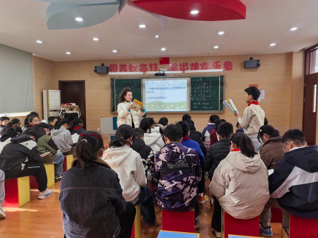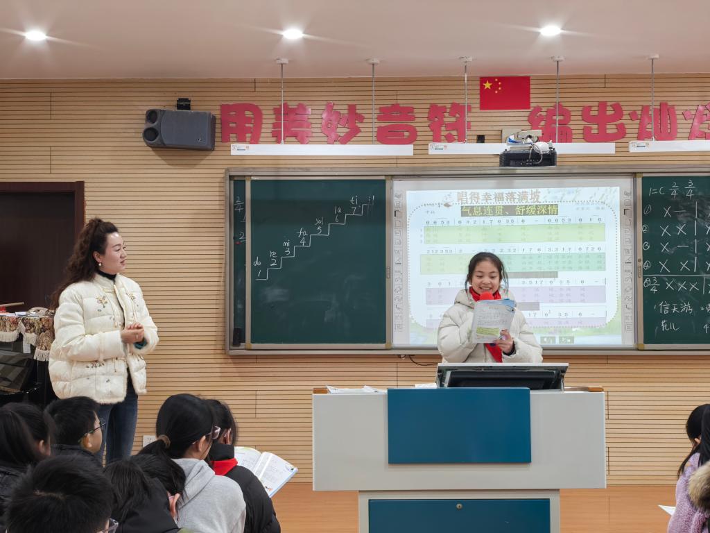 2025.11.27上午第一节课,陈真老师执教六年级音乐课《唱的幸福落满坡》陈老师以江南民歌《姑苏风光》为切入点,引导学生回顾江南民歌“柔美舒缓、吴侬软语”的特点。随后,教师引入陕西民歌《唱得幸福落满坡》,介绍其为农民创作者歌颂建国十周年农村变化的获奖作品背景,并结合黄土高坡图片,引导学生提炼出陕西民歌“高亢豪迈、咬字有力、声音明亮”的特质,清晰对比出南北民歌的地域差异。在学唱环节,学生通过聆听发现歌曲前两乐句“同头异尾”的创作手法,在教师指导下解决难点,按乐句情绪差异调整演唱状态。拓展环节中,学生上台展示,梦之旅组合的改编版本更让大家感受到民歌的现代活力。最后陈老师引用周总理名言寄语,鼓励学生传承民族音乐瑰宝,让文化自信在歌声中扎根。