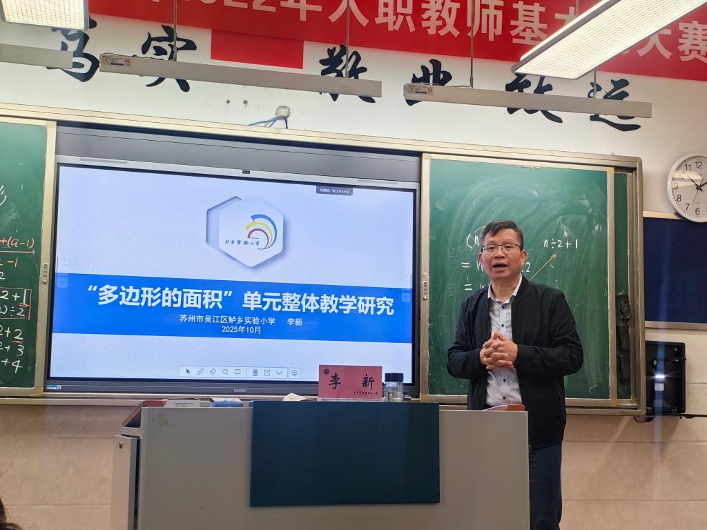 2025年10月20日,江苏省特级教师李新老师莅临太仓市沙溪镇第二小学,给全体数学老师带来一节精彩的课,并结合这节课开设了一个题为“《多边形的面积》单元整体教学研究”的讲座。