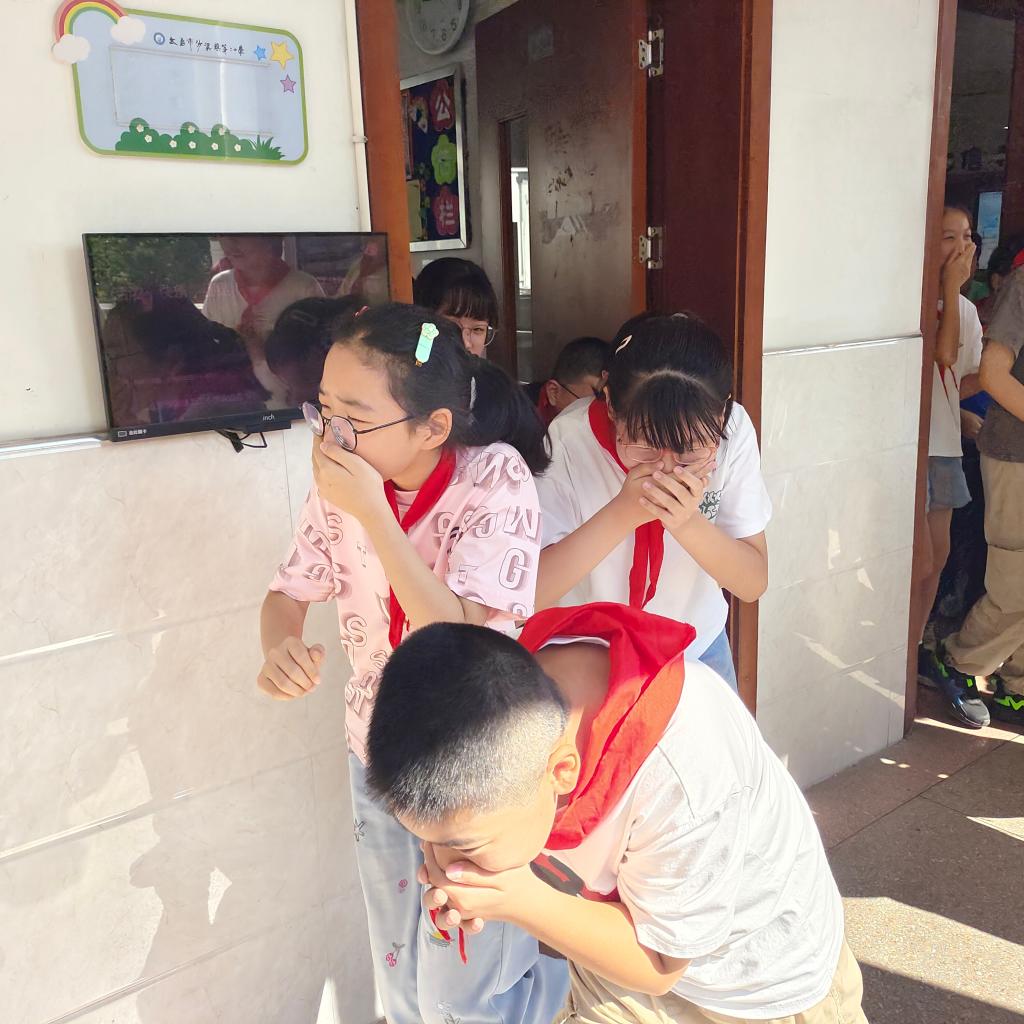 消防警报声在校园内骤然响起,各班教师迅速反应,立即停止授课并告知学生:“现在模拟教学楼发生火灾,请同学们保持冷静,听从指挥撤离!”学生迅速用湿毛巾捂住口鼻,弯腰低身,沿指定路线撤离教室。